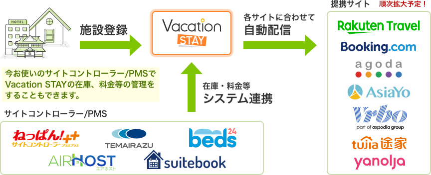 登録は1度だけ、最小管理コストで国内外の宿泊・民泊サイトに自動配信